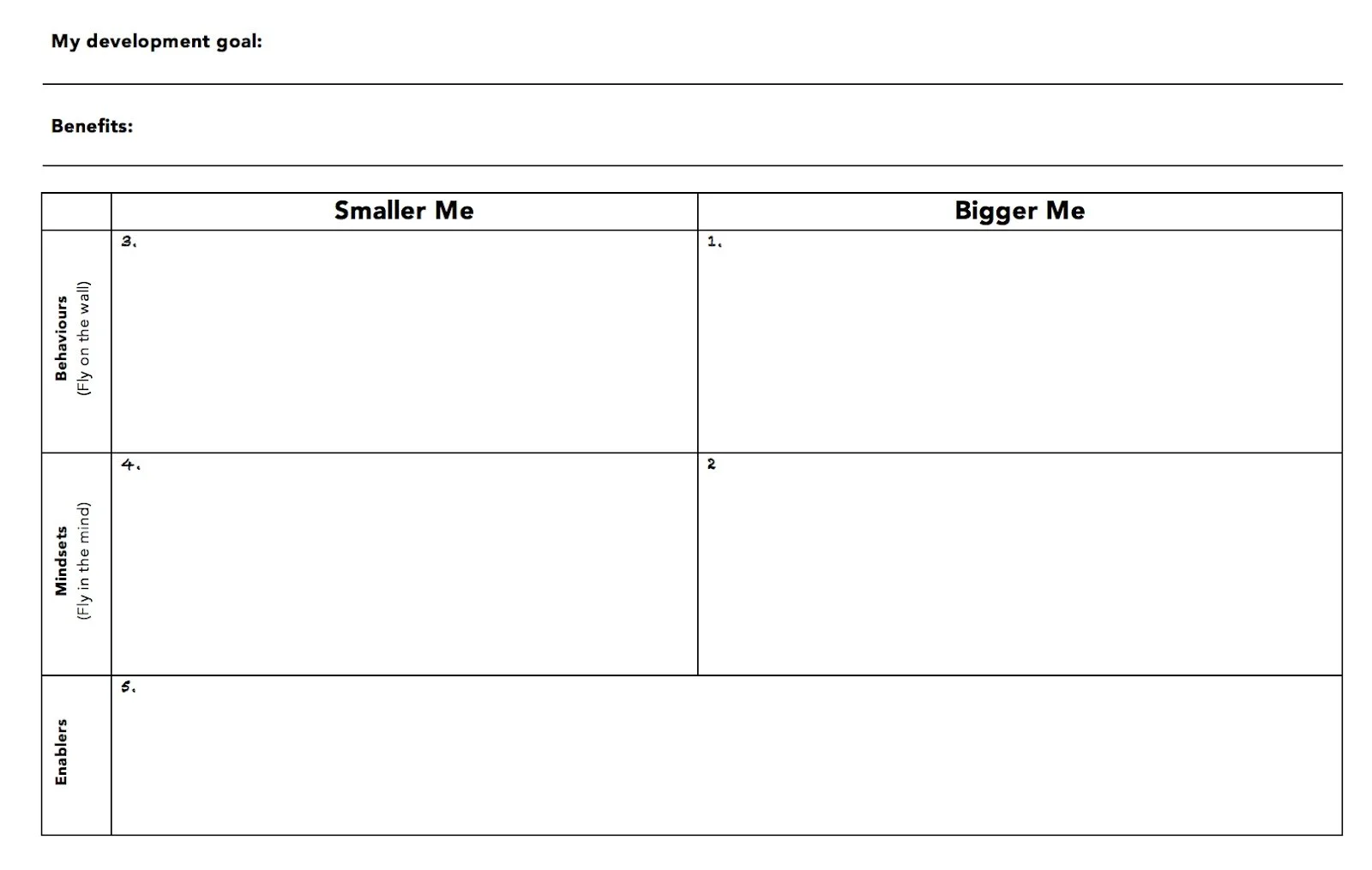 Boxes 1 and 2 represent the “bigger you”: the behaviours and mindsets that reflect the more ‘grown-up’ version of you.